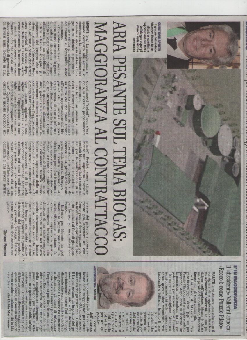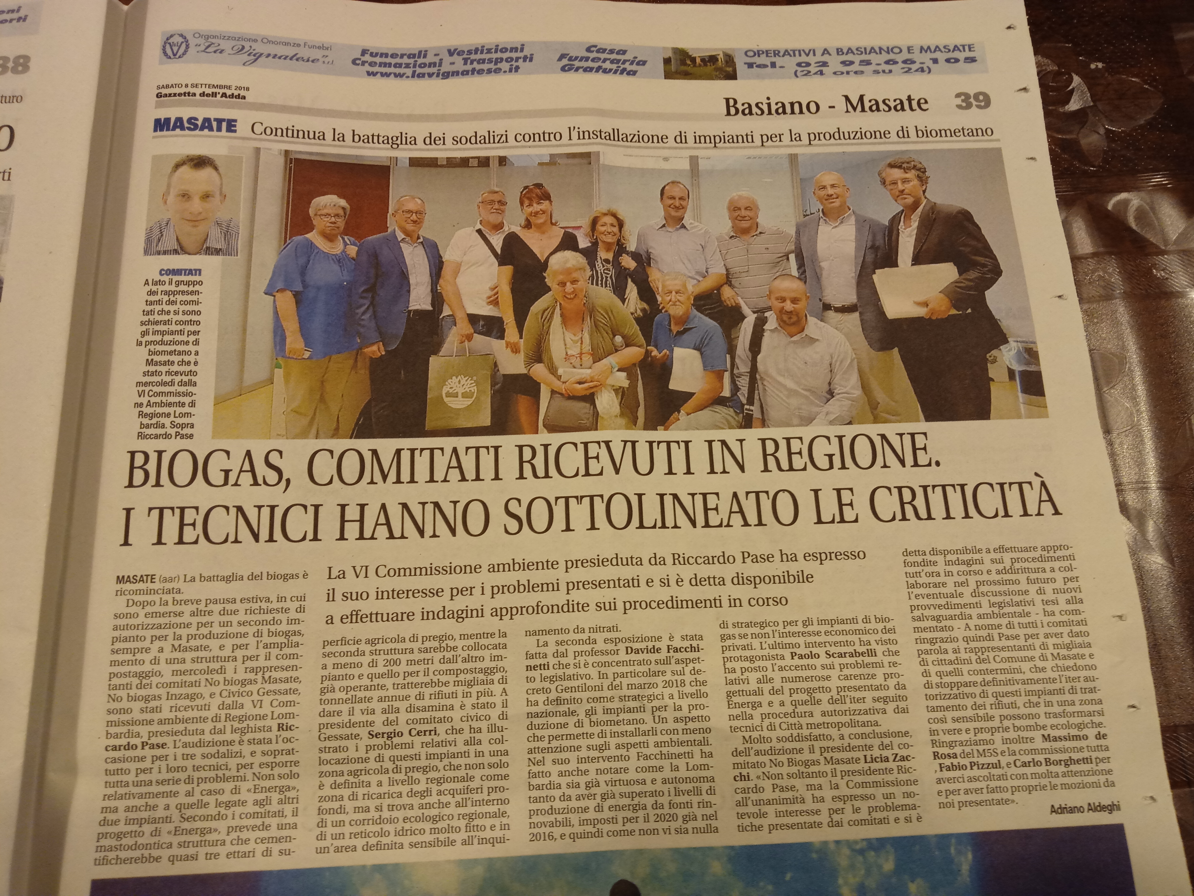 Il Giorno 8 Ottobre 2018 – No biogas: